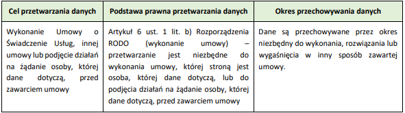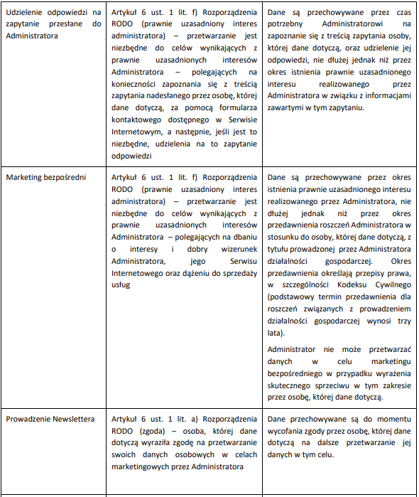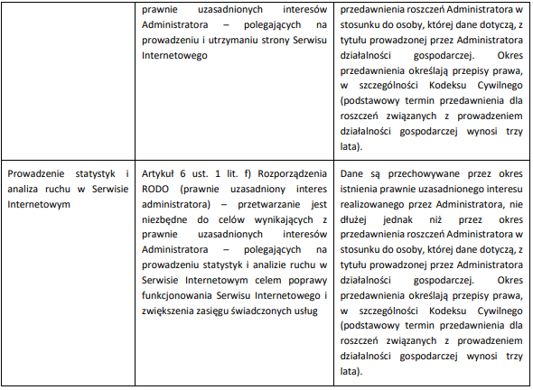 3. CEL, PODSTAWA I OKRES PRZETWARZANIA DANYCH W SERWISIE INTERNETOWYM