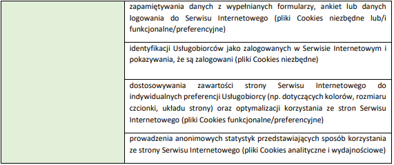 oraz innych podobnych narzędzi umożliwiających przeglądarce osoby odwiedzającej stronę Serwisu