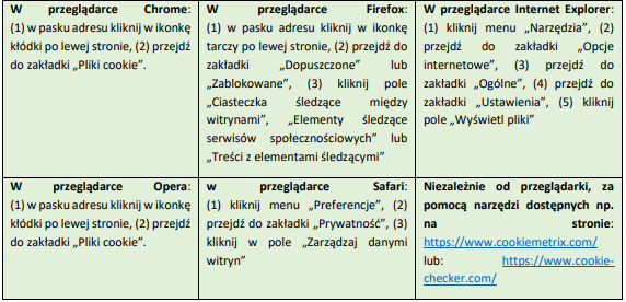 ustawień dotyczących plików Cookies oraz ich samodzielnego usuwania w najpopularniejszych